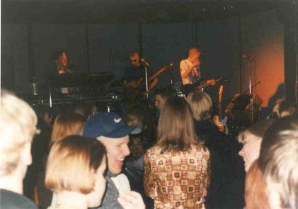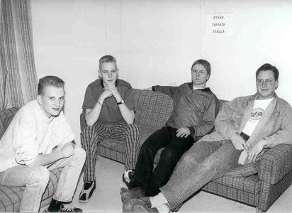 Täysi meno päällä. Vasemmalta: Pietu, Jussi, Teemu ja takana Tommi.